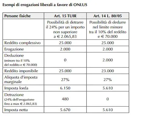 Il TUIR consente alle persone fisiche che effettuano delle erogazioni in favore di Onlus (OdV iscritte) o di APS iscritte al Registro Nazionale o ai Registri Regionali o Provinciali la possibilità di detrarre dall’imposta lorda calcolata il 24% della somma donata per un importo non