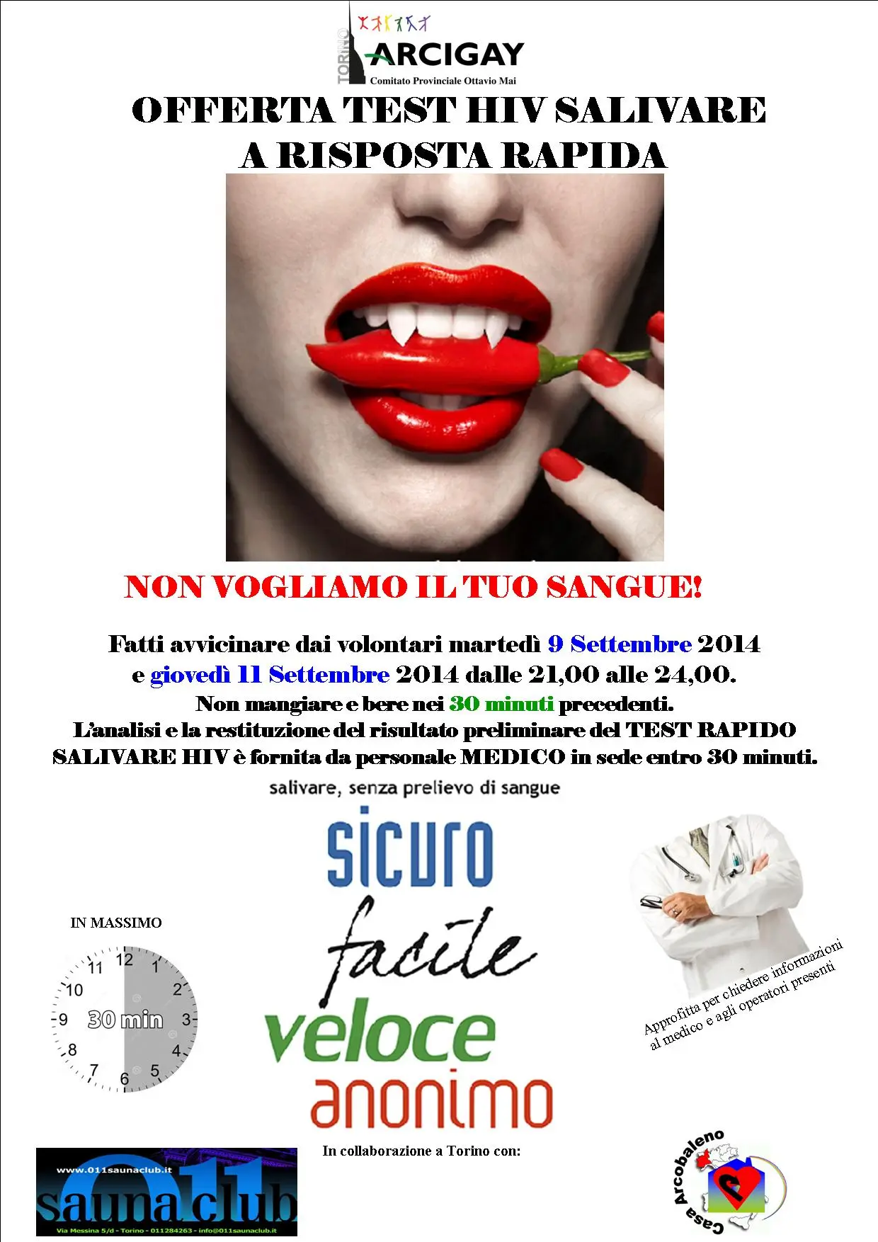 POTRAI ESEGUIRE IL TEST HIV A RISPOSTA RAPIDA PRESSO IL CLUB CIRCOLO RICREATIVO SAUNA