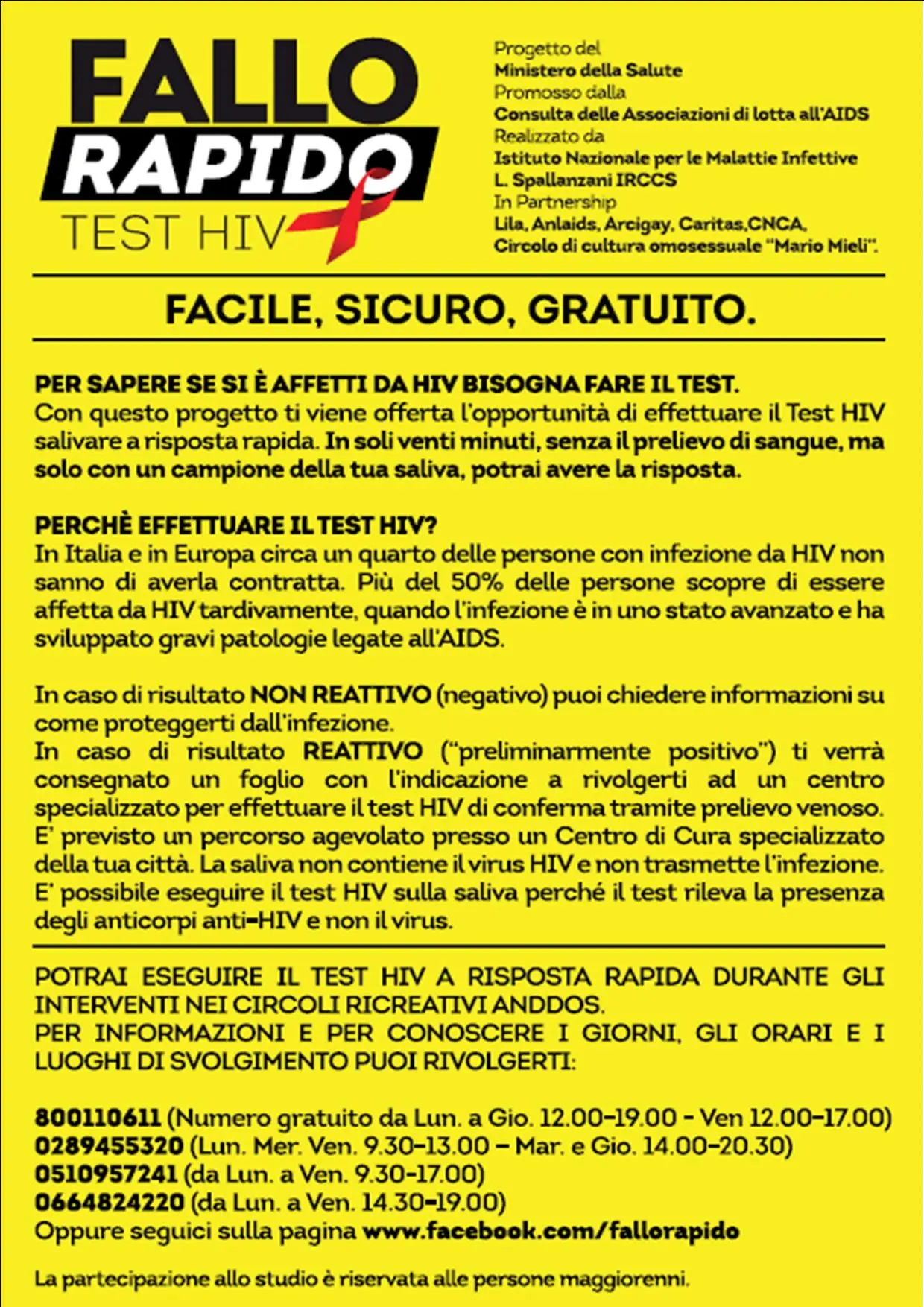 con l’indicazione a rivolgerti ad un centro specializzato per effettuare il test HIV di
