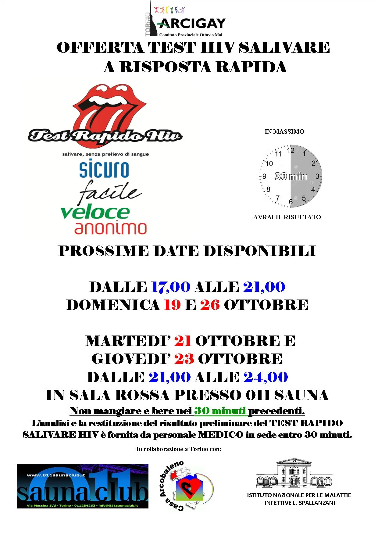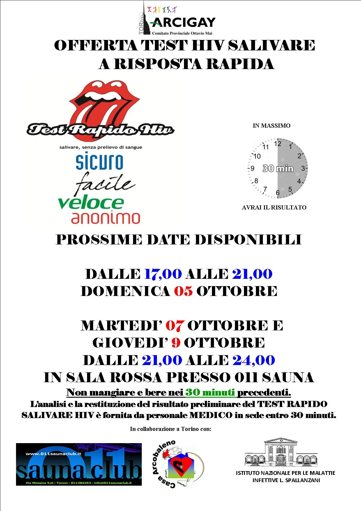POTRAI ESEGUIRE IL TEST HIV A RISPOSTA RAPIDA PRESSO IL CLUB CIRCOLO RICREATIVO SAUNA